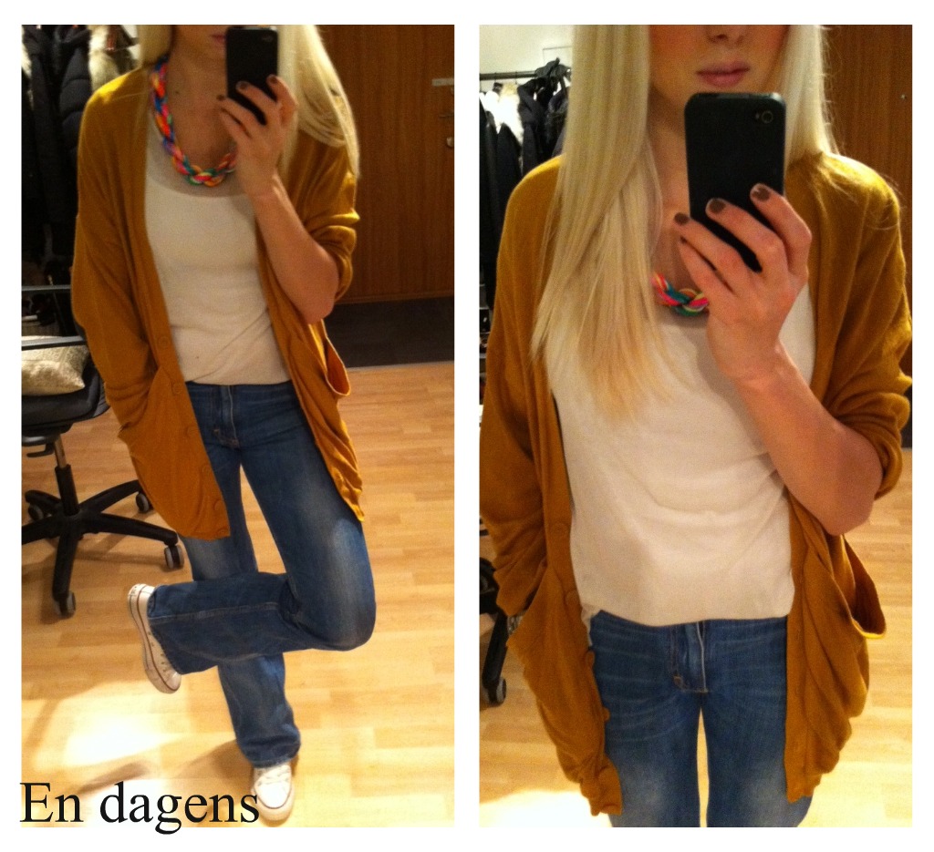 Tisdag- Kofta (likadan som den jag köpte i svart) & Halsband/Monki, tisha & Jeans/Acne & Skor/Converse
